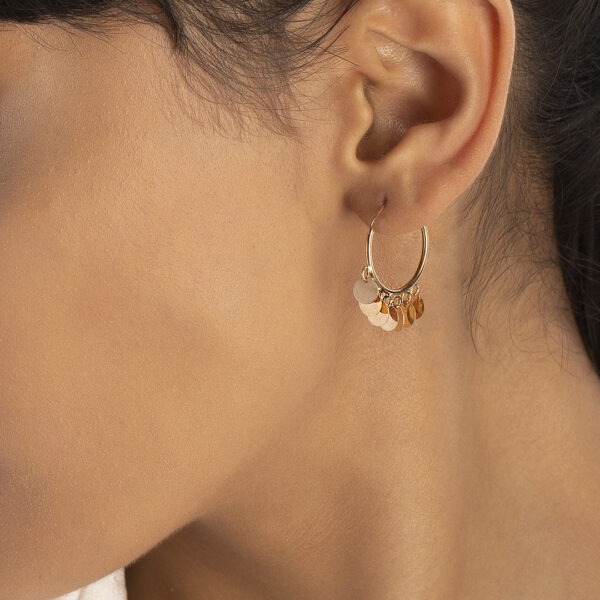 گوشواره حلقه ای پولکی محصولی بسیار زیبا، کاربردی و جذاب است. مزیت بزرگ این گوشواره طلا طراحی چشمگیر و در عین حال بسیار ساده آن میباشد که باعث میشود بتوانید آن را هم برای استفاده روزمره تان و هم در مهمانی های خود به گوش بیاویزید.